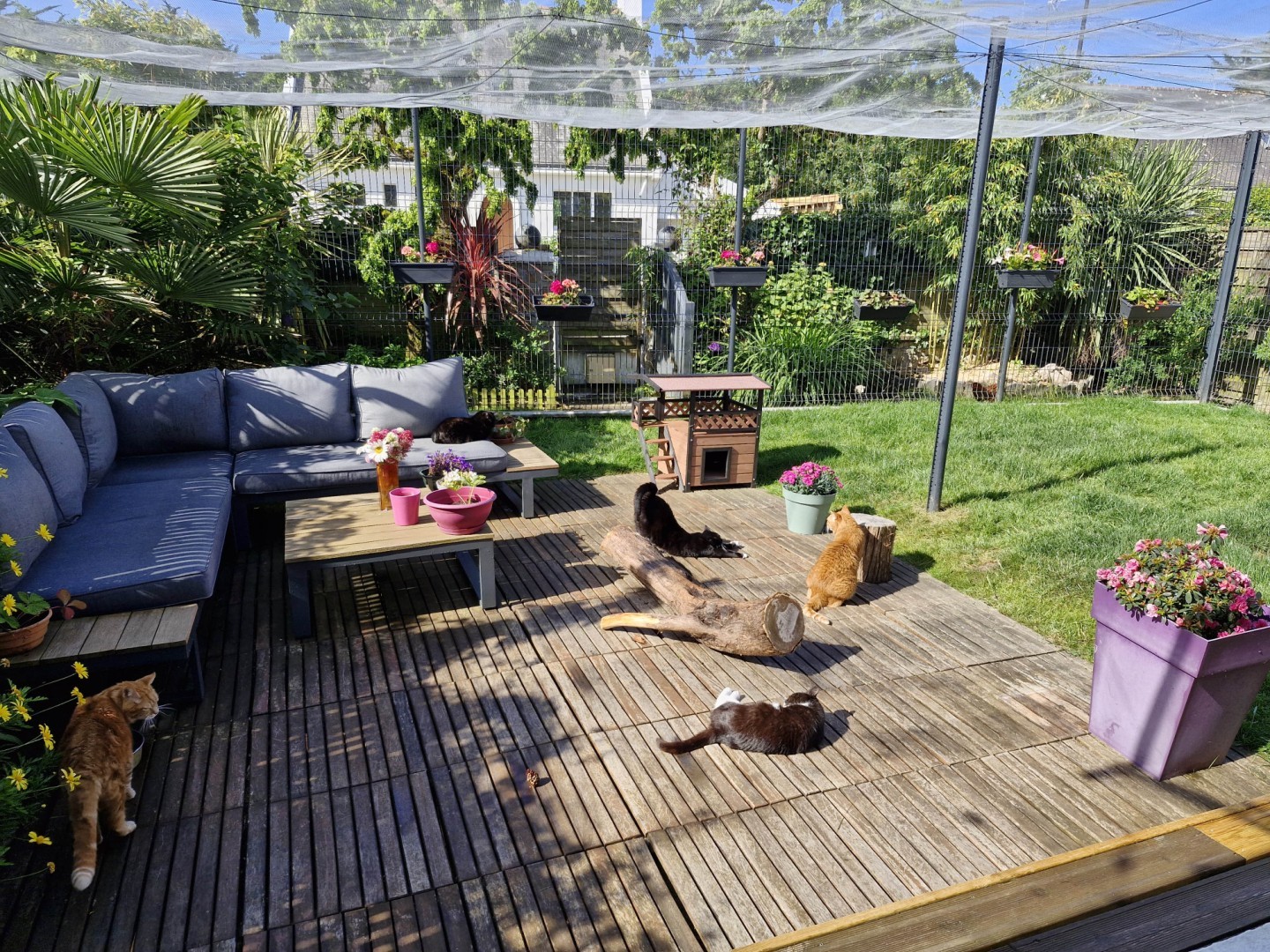 Un concept hôtelier authentique et innovant, entièrement tourné vers le bien-être et la sécurité des chats. D’un côté, des chambres individuelles avec chacune un jardin privatif entièrement sécurisé, et donnant éventuellement l’accès à un grand salon aménagé en salle de jeux en fonction de l’acclimatation du chat. D’un autre côté, des chambres collectives, plus grandes, partagées entre 4 à 5 pensionnaires avec jardin privatif également. La colocation entre ces chats de propriétaires différents s’est toujours bien passée.