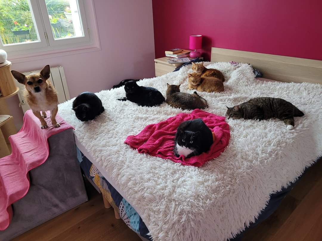 Forte de ces deux magnifiques expériences professionnelles, et aussi de par mon bénévolat permanent en tant que famille d’accueil et de ma vie partagée au quotidien avec 10 chats, j’ai à cœur aujourd’hui de transmettre mes connaissances pour aller vers une meilleure compréhension de nos petits félins. Il est clair que de vivre avec plusieurs chats depuis de nombreuses années m’a fait expérimenter différentes problématiques !